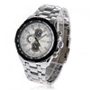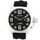 This Curren quartz watch with silicone band is a comfortable piece, great for any occasion. The black silicon band matches the black dial decorated with silver split numerals and half moon style hour markings. Encased in a silver frame, this time piece is a perfect fit for every collection.
